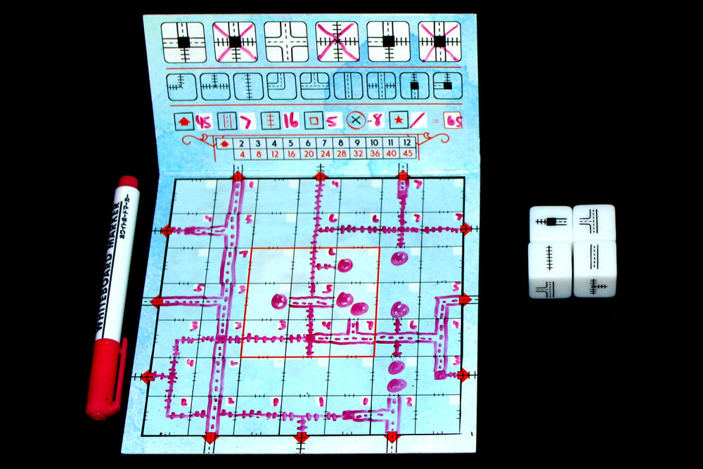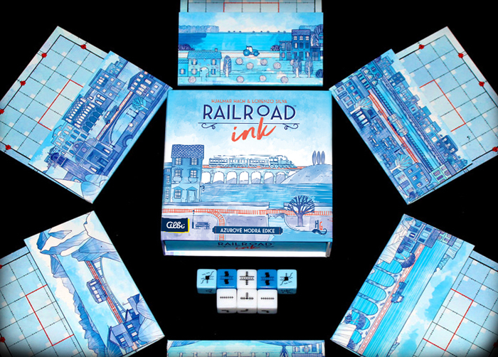 New lands have opened up and the race is on to create the best network of rail and road lines through it. In Railroad Ink, players roll the Route dice and must then draw the subsequent results on their individual Route boards. Players score points for having long interconnected Routes, as well as connecting the entry points to their board, plus having Routes through the center of their boards. But beware, they’ll lose points for leaving unfinished lines. In the Deep Blue Edition, the Lake and River dice add in some cool, refreshing waterways to the maps. But in the Blazing Red Edition, Meteors fall from the sky and Volcanoes erupt from underground. It’s a challenge to keep their roads and rails from getting destroyed, and having to repair them when they are. Or, players can combine the two for epic, 12-player games!
